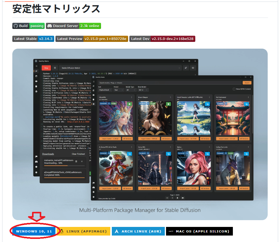 ダウンロードする場所ですが、Stability Matrixのgithubページにアクセスし、