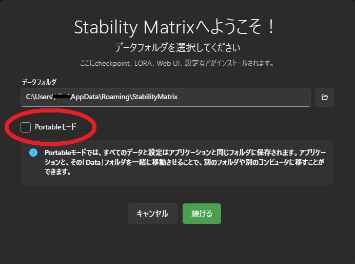 最初からStability Matrixをインストールしたい場所で