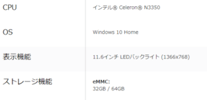 私のネットブックはASUSのE203Nという低スぺパソコン。