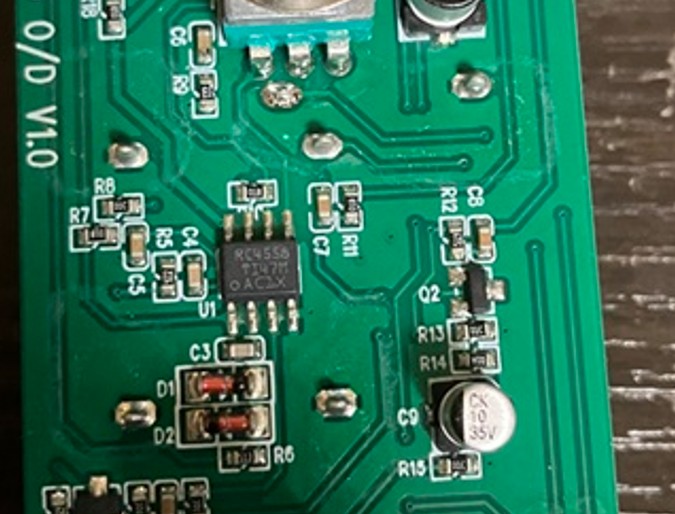 下は、オペアンプとクリッピングダイオード部分の写真。