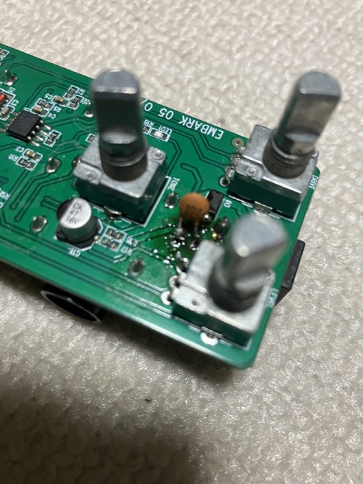 その代わりコンデンサの裏に補償コンデンサを入れる作戦に変更。