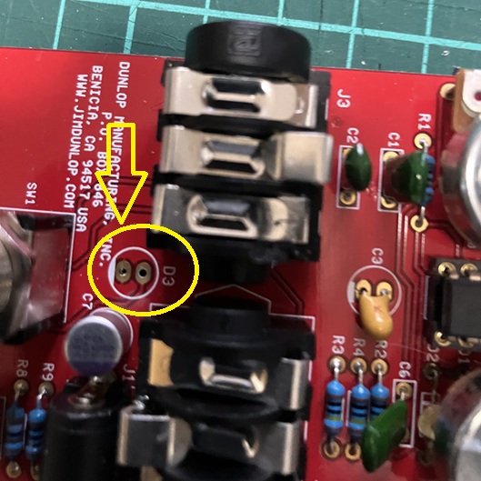MXR distortion+のLEDをはずしたところ