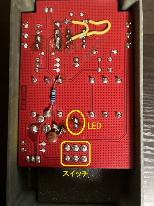 MXR distortion+のLEDを裏面から見たところ