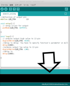 arduinoIDEの矢印のところにエラーメッセージとかが表示されるのですが、