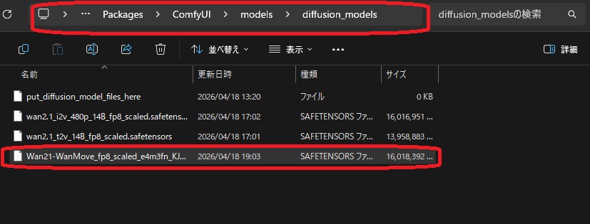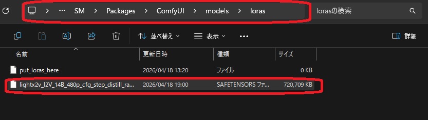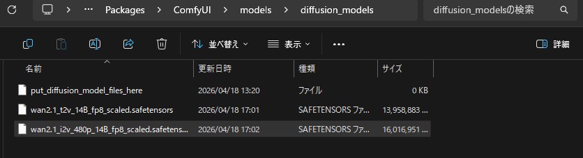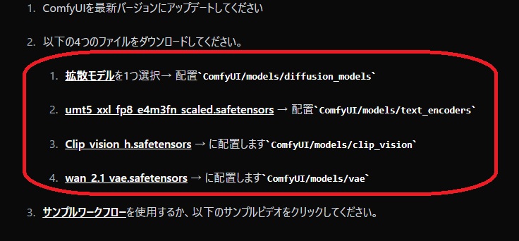 ファイルの格納の情報はないので、さっきのwan2.1と同じ場所、