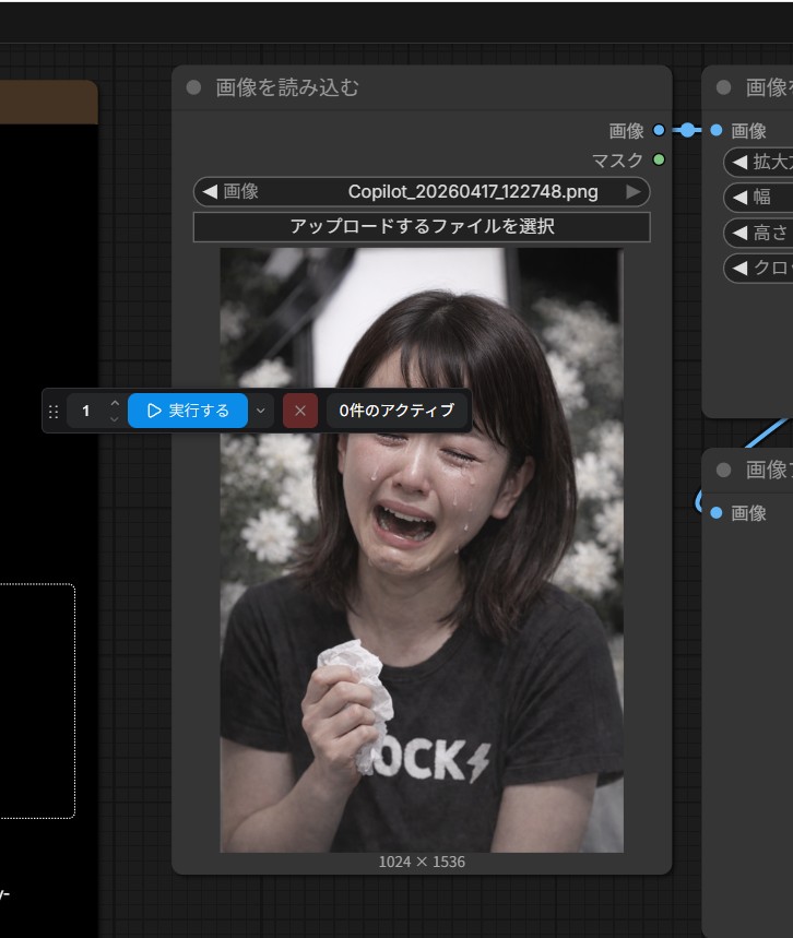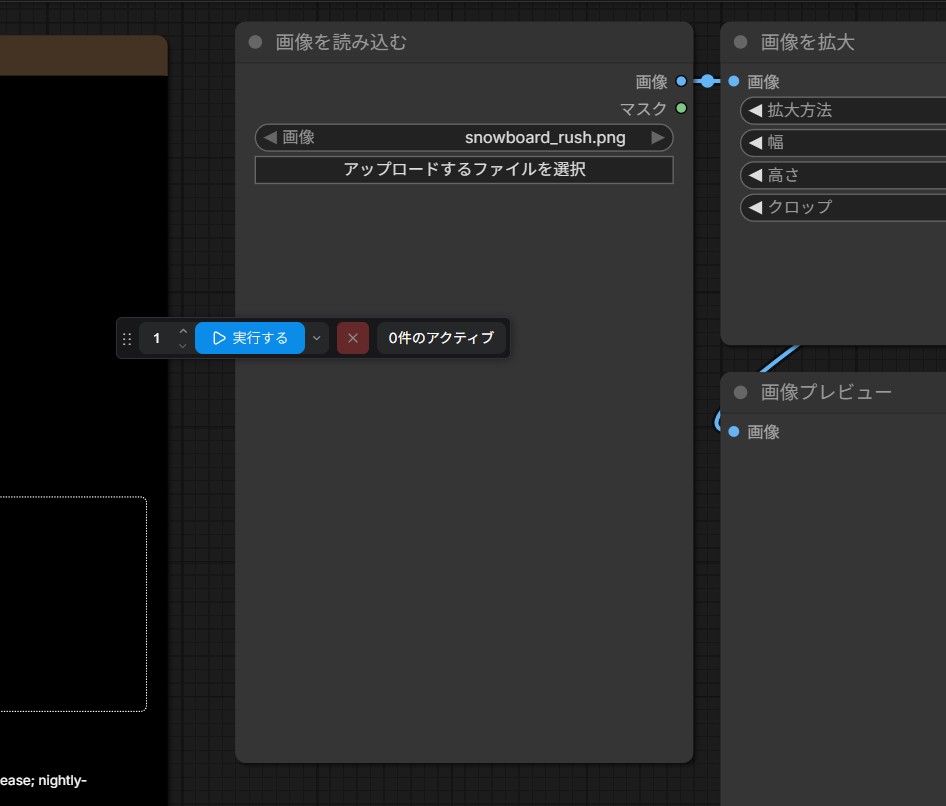 もしかしたら、テキストから生成のnodeで、最初に画像取り込みをつけたかもしれません。