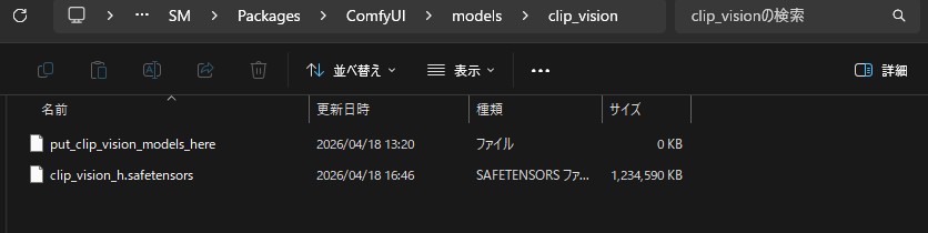 SM→Packages→ComfyUI→models→clip_visionに格納します。