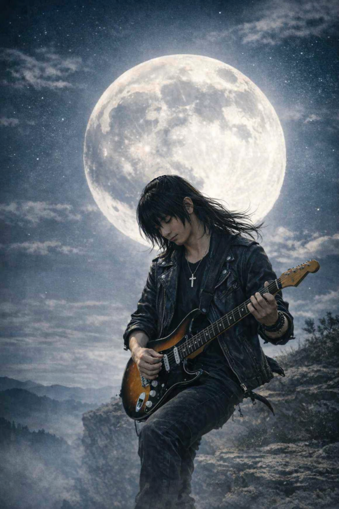月光でエビぞりになってギターを弾くシルエットもお願いします。