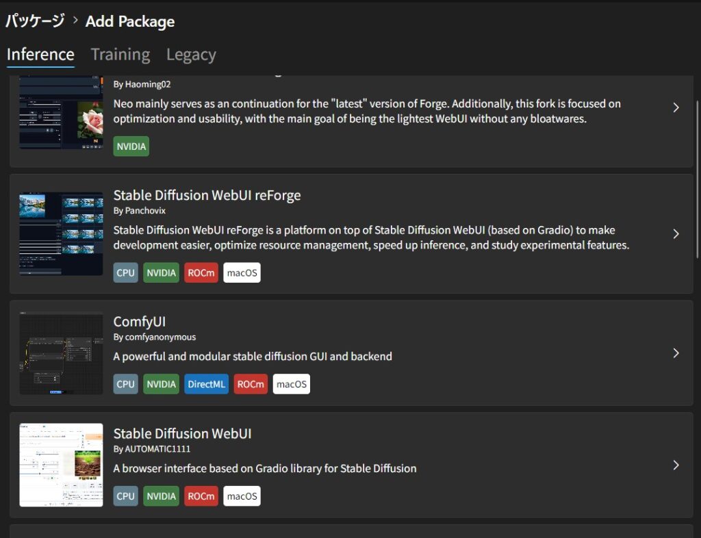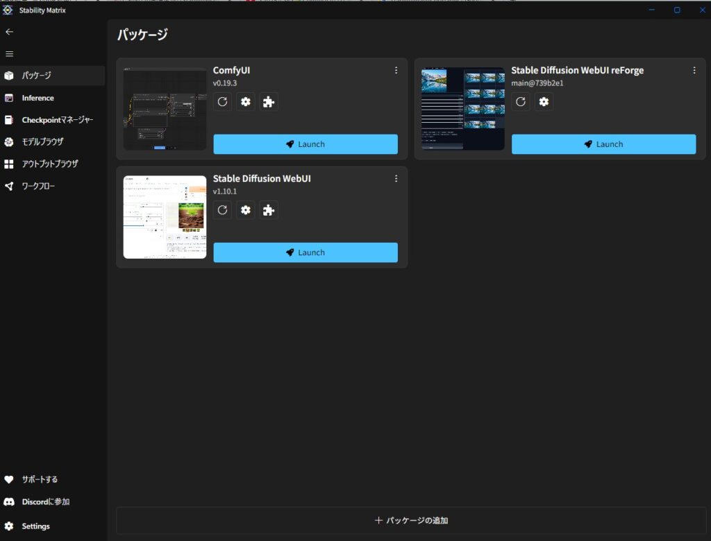 またStabilityMatrixという無料ランチャーアプリでは、複数の画像生成ソフトが使えます。