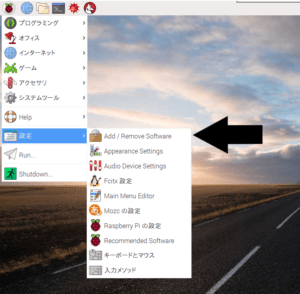 設定のところまでマウスを移動し、Add/Remove Softwareをクリックします。