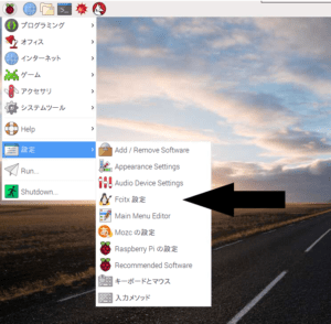 マウスを設定までずらしてFcitx設定をクリックします。