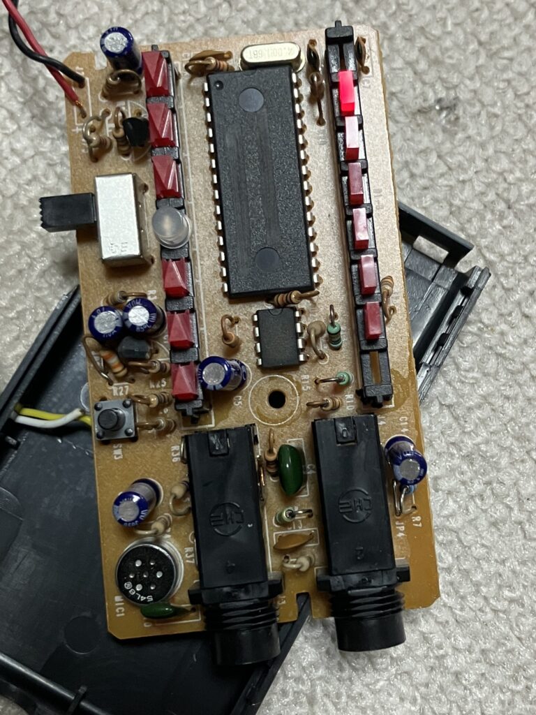 AQT-100の基板。左下に外部マイク、その隣には入出力ジャックが見える。