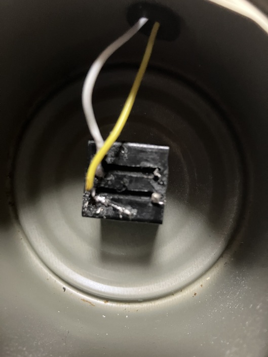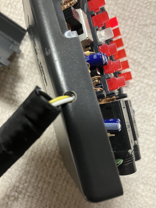 そしてはんだする前にカバーに穴をあけて線を通しましょう。