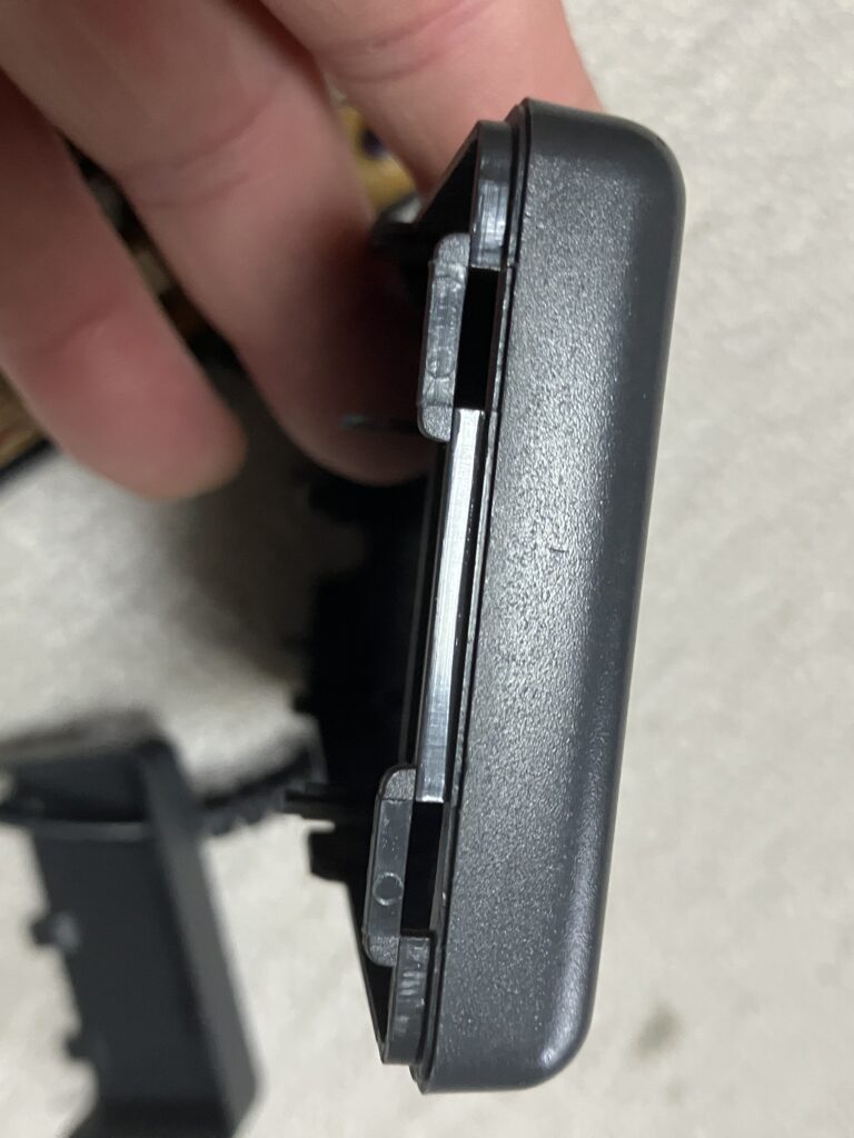 本体カバーを外すには電池カバーの近くをゆがめるように握ると隙間が空きます。