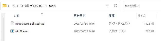 私は、Cドライブ直下に、「tools」というフォルダを作って