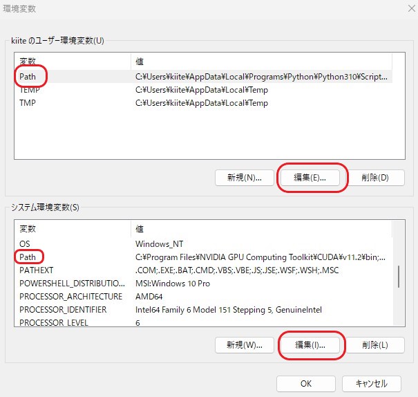 と迷い、わからないので両方のPathを「編集」で開いて